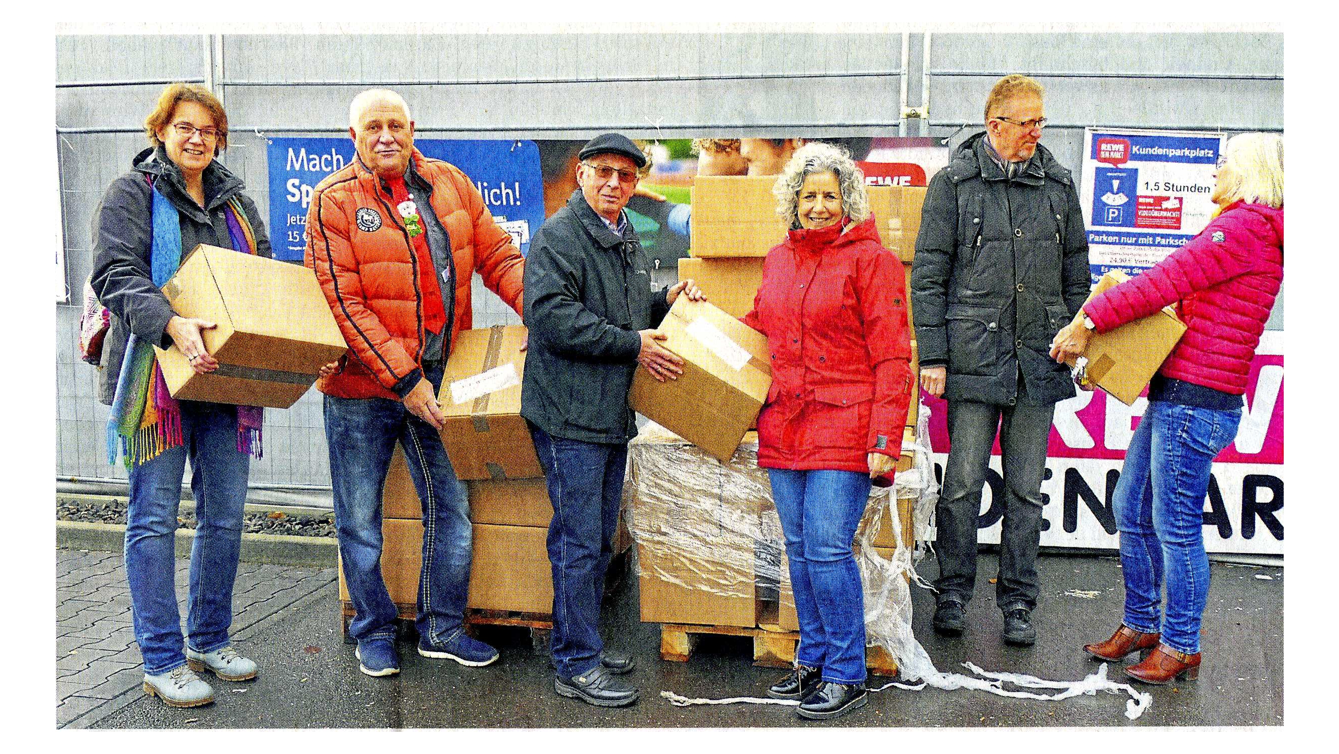 Das ist heute natürlich ganz anders. Nicht nur die Kinder, auch die Erwachsenen beschenken sich, und die Facette an Geschenken ist breit gefächert. In diesem Jahr suche ich nicht nur Gaben für meine Familie aus, sondern darf an einer besonderen Geschenkaktion teilnehmen. Die Vinzenz-Konferenz, ein kirchlich und staatlich anerkannter Verband ehrenamtlich tätiger Laien in Boppard, organisiert eine Hilfsaktion für bedürftige Menschen in der Region. Finanziert von der Firma Sebamed in Bad Salzig packen die Mitarbeiter vom Rewe in Boppard gemeinsam mit Geschäftsleiter Otto May die Hilfspakte voll mit leckeren Lebensmitteln und weihnachtlichem Gebäck. Insgesamt 70 Pakete kommen zusammen, die Gerhard Schäfer, Leiter der Vinzenz-Konferenz, zusammenstellt.